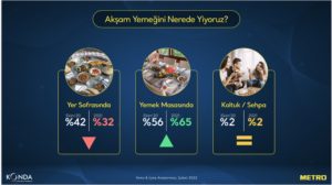 15 Mart 2022- 30 yılı aşkın bir süredir Türk mutfak kültürünü koruma ve gelecek nesillere aktarma amacıyla çalışan Metro Türkiye, KONDA iş birliği ile gerçekleştirdiği ‘2022 Yeme-İçme Araştırması’nın sonuçlarını açıkladı. Tüketicilerin tutum ve davranışlarını paylaşarak yeme içme sektörüne yol göstermeyi ve kamuoyunu aydınlatmayı amaçlayan Metro Türkiye, araştırmada; alışveriş tercihlerini, sağlıklı beslenme eğilimini ve evde ve restorandaki yeme içme alışkanlıklarınıdetaylı bir şekilde mercek altına alıyor.