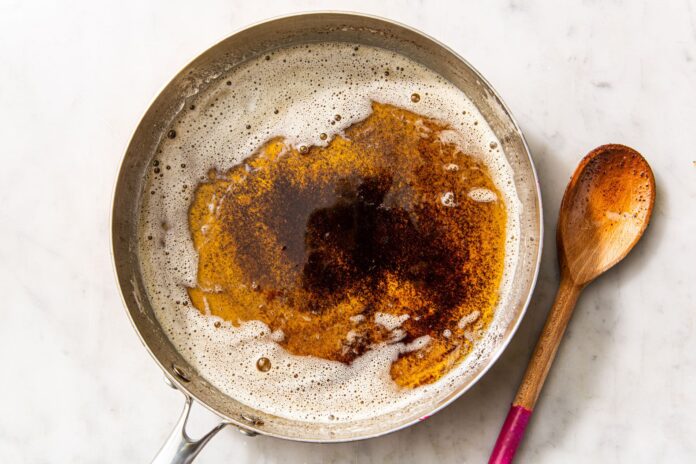 6. Bu süre zarfında tereyağı kahverengi renge dönüşecek ve hafif bir fındık kokusu yayacaktır.