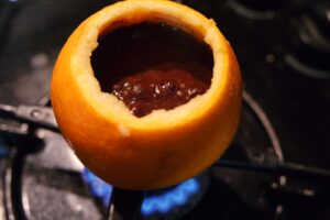 Portakal kabuğunun en ilginç kullanımlarından biri de içinde Türk kahvesi pişirme. Bunu yapabilmek için portakalın üst kısmında bıçak yardımıyla yuvarlak bir delik açın ve bir tatlı kaşığı yardımıyla kabuğu delmemeye, yırtmamaya özen göstererek içini çıkarın ve afiyetle yiyin. Ardından elde ettiğiniz içi tamamen temizlenen portakal kabuğunun içine klasik Türk kahvesini yaparken yaptığınız gibi 1 tatlı kaşığına yakın Türk kahvesi ve 1 fincan su koyun ve karıştırın. Ardından dikkatli bir şekilde ocağa alın ve pişirdikten sonra elinize fırın eldiveni geçirerek ocaktan alıp fincana aktarın. İşte bu kadar, portakal aromalı Türk kahveniz hazır oldu bile.